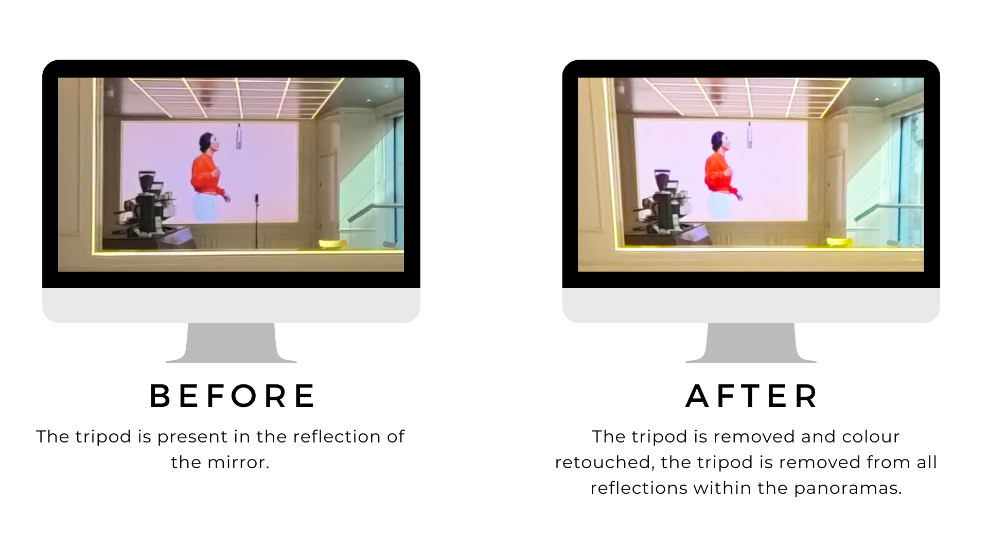 Your space deserves better than amateur shortcuts. Our professional tripod removal ensures your virtual tour maintains the same high standards as your physical environment, creating an immersive experience that converts viewers into visitors.